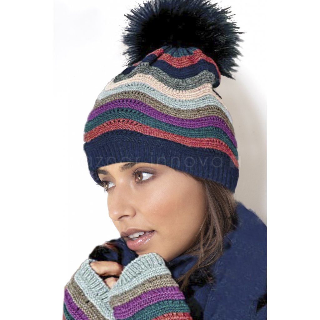 Admas zimná čiapka dámska modrá s brmbolcom