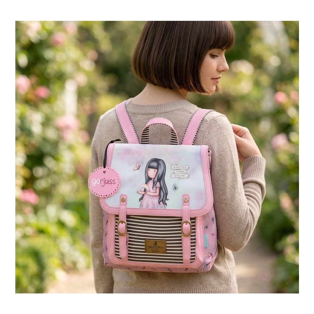 Batoh s motívom Somewhere z kolekcie Gorjuss anglickej značky Santoro London je ideálny na výlety - zmestí sa do neho všetko potrebné. Batoh je možné ľahko prehodiť a nosiť ako kabelku. Zapínanie je na cvoky a zips. Popruhy sú nastaviteľné podľa potreby.