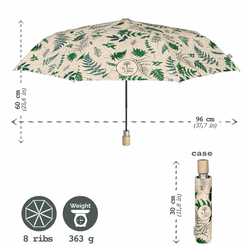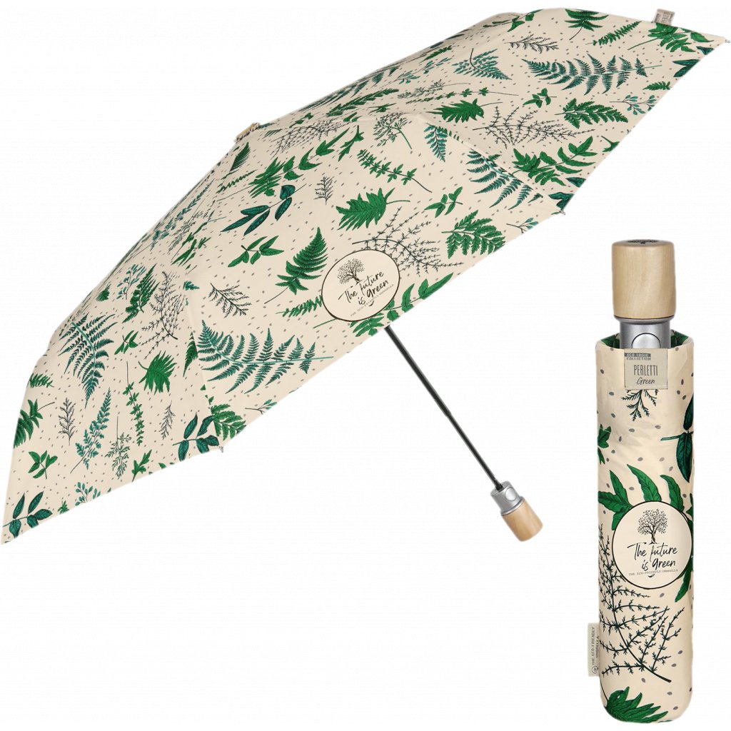 Perletti - Green - Dáždnik vystrelovací s drevenou rúčkou ♻️