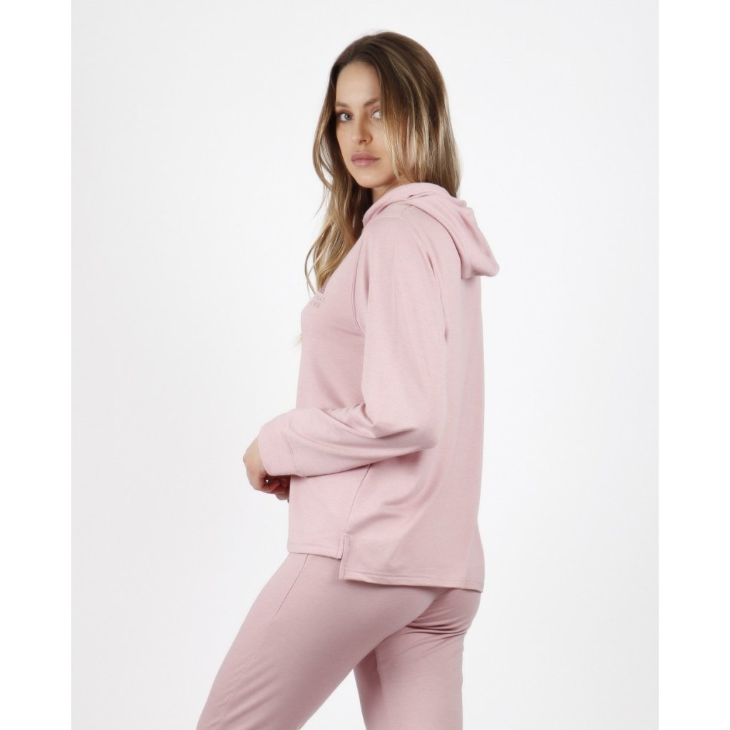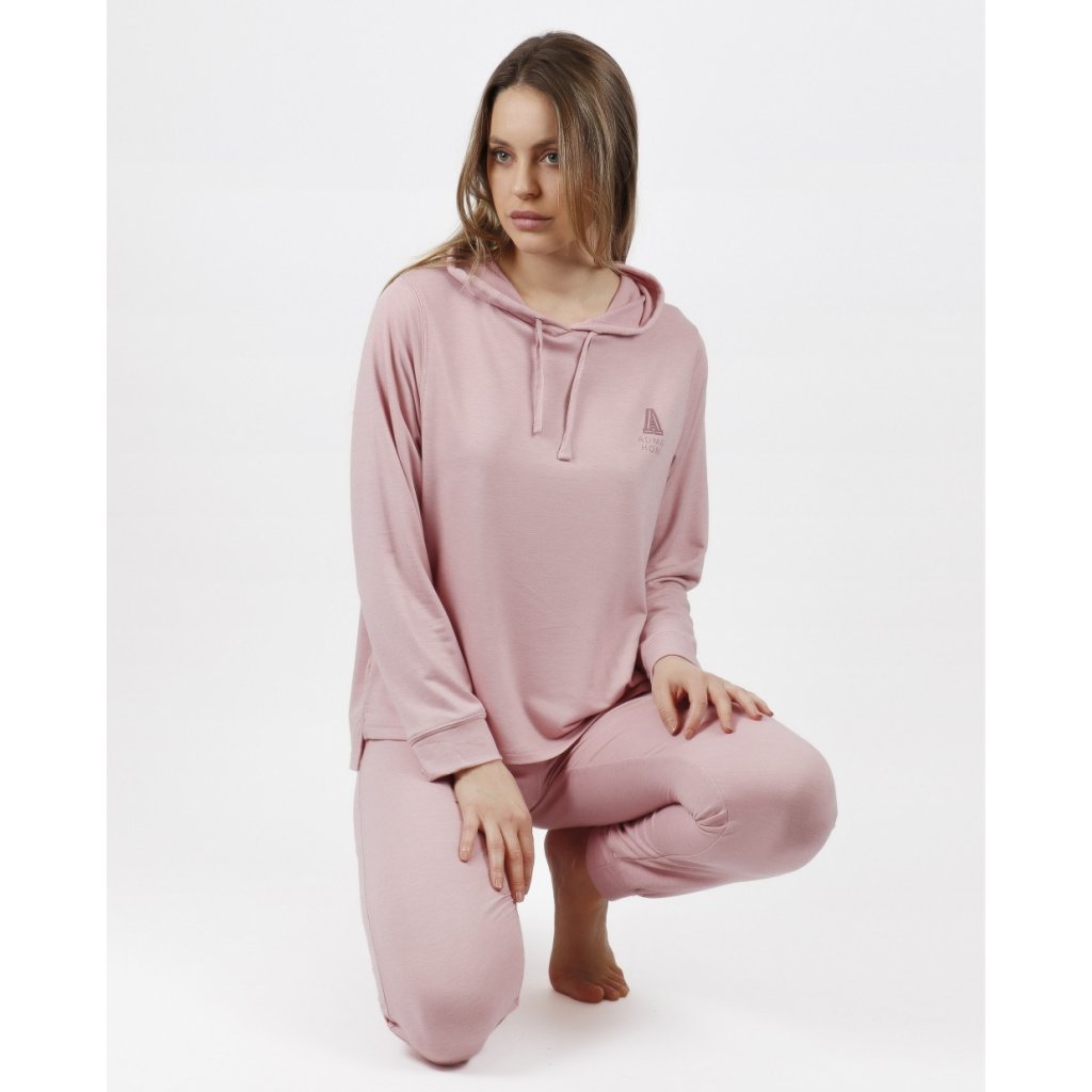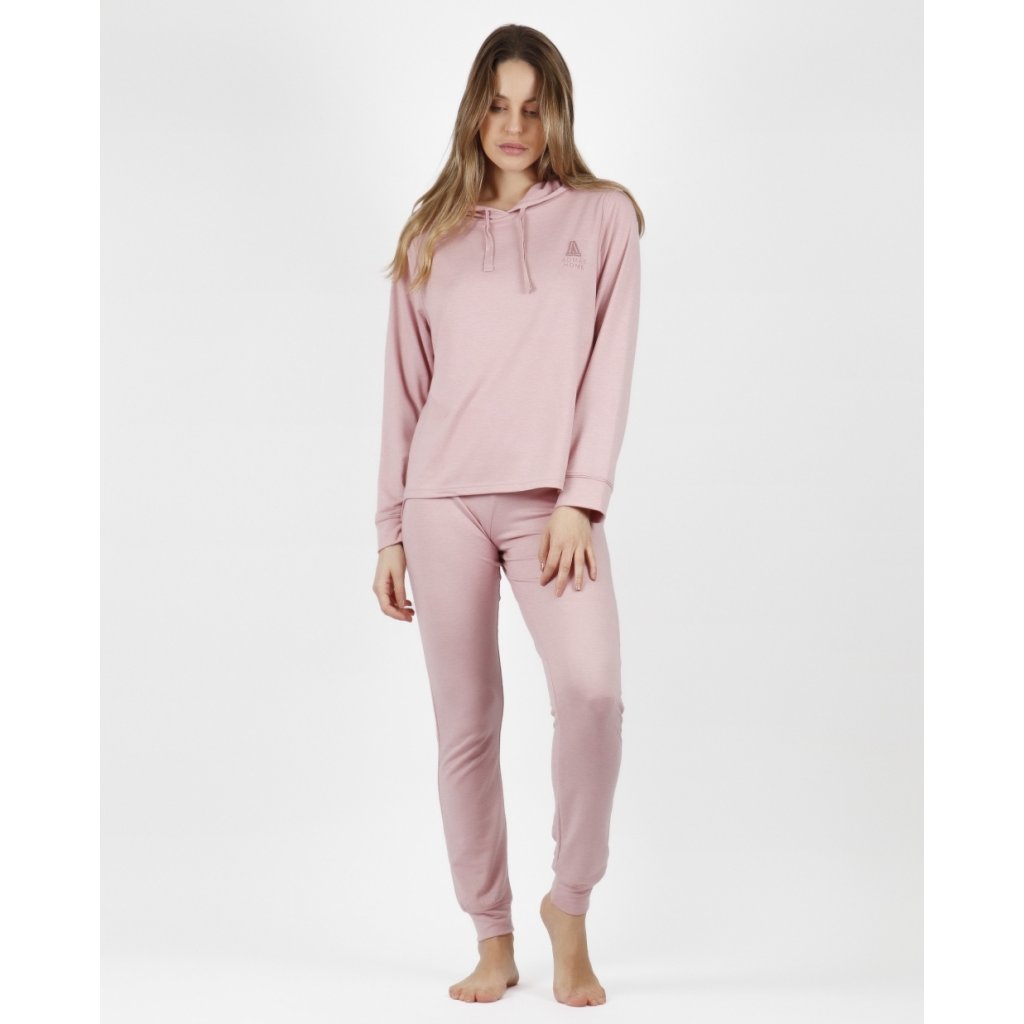 Admas Home dámske domáce oblečenie s kapucňou ružové