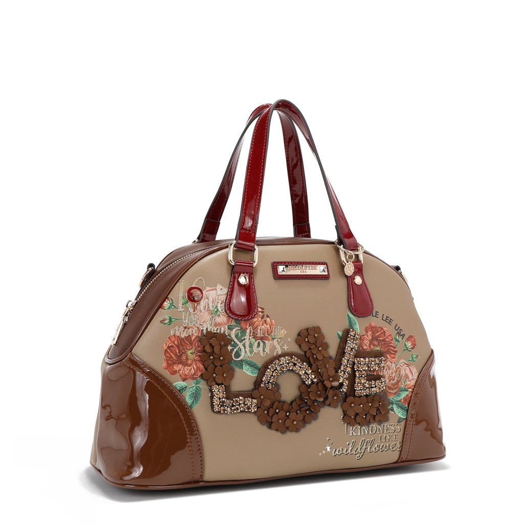 NICOLE LEE elegantná hnedo-béžová kabelka do ruky aj na plece s nápisom Love