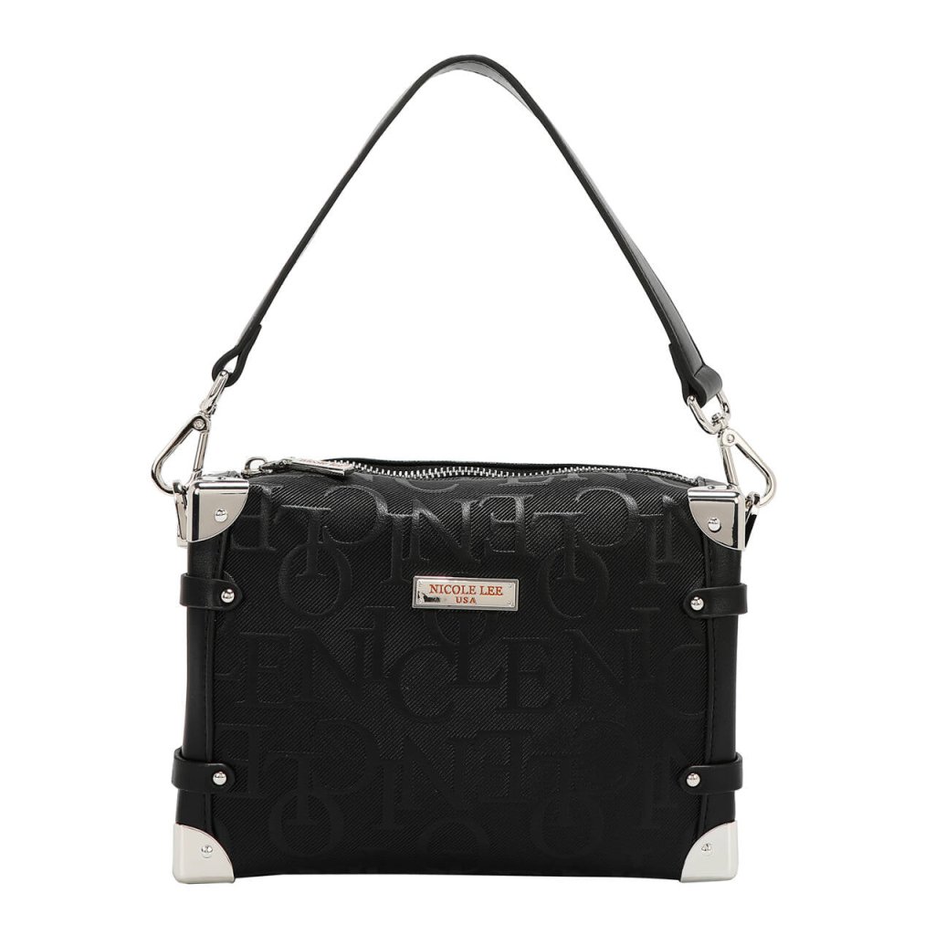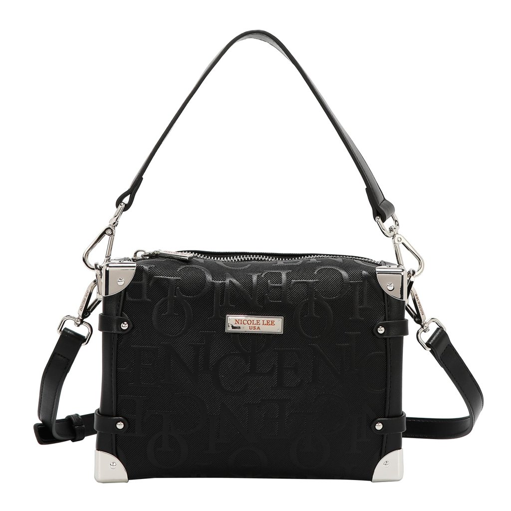 NICOLE LEE čierna kabelka na plece s dlhým popruhom Embossed Elegance