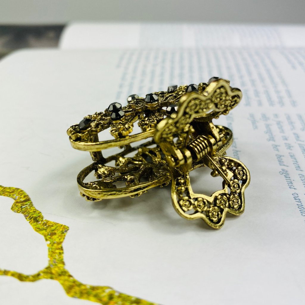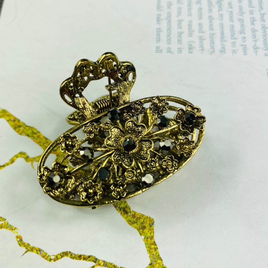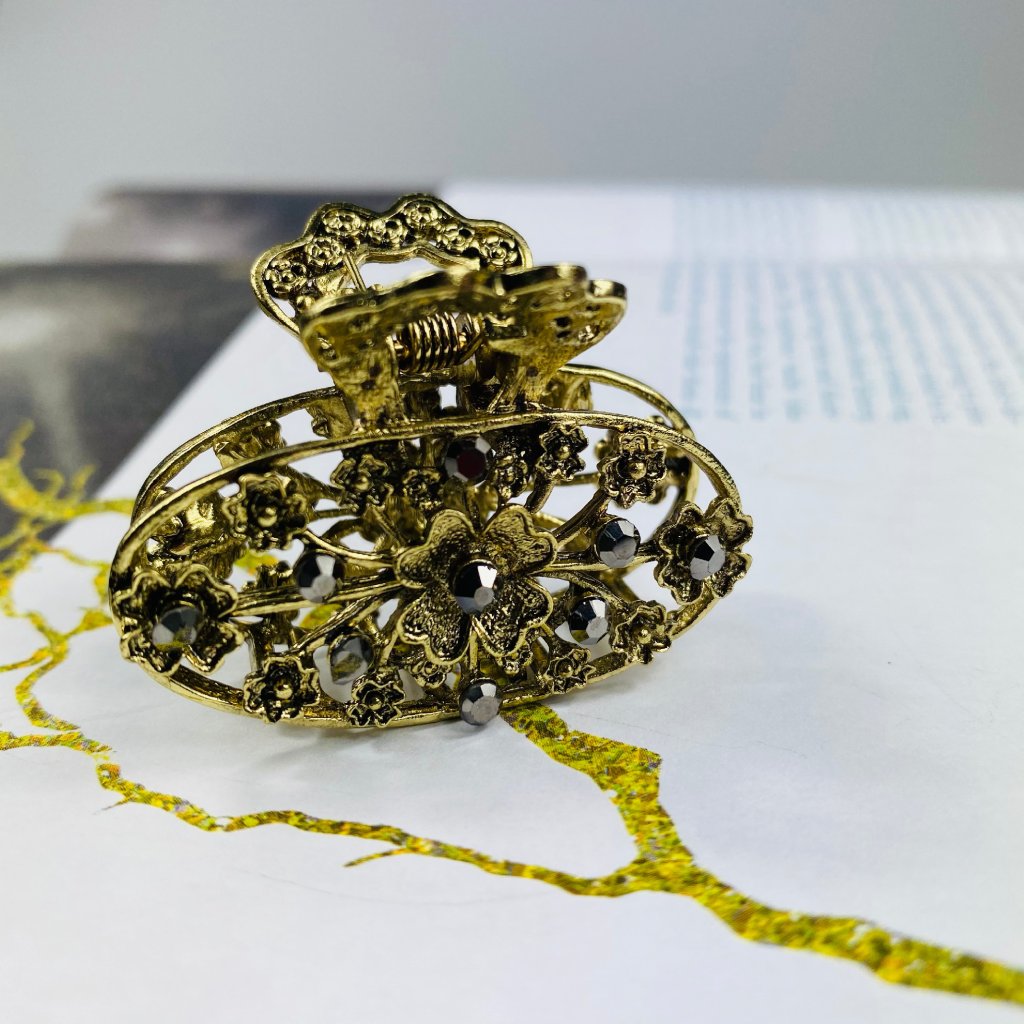 Kovový štipec do vlasov - Kvietky s čiernymi kamienkami