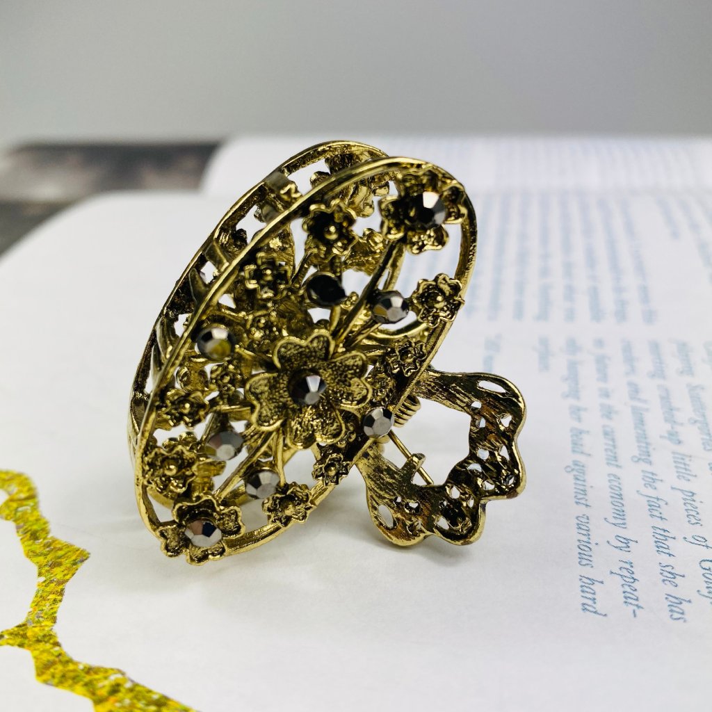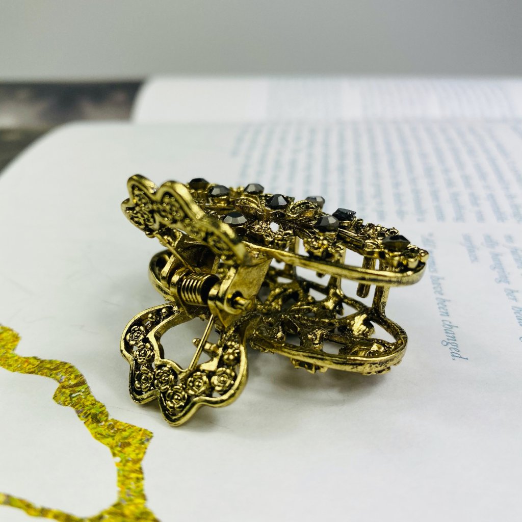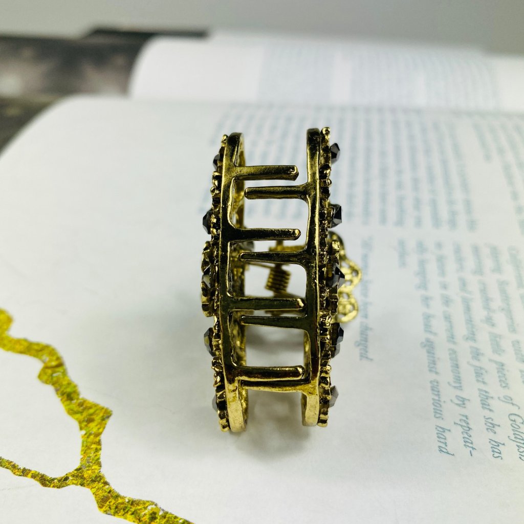 Kovový štipec do vlasov - Kvietky s čiernymi kamienkami