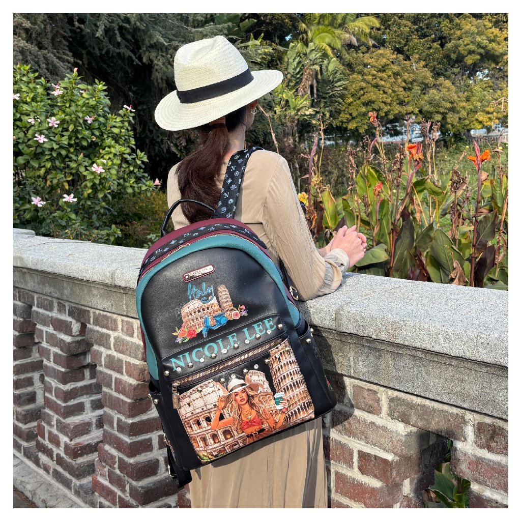 NICOLE LEE batoh maxi s puzdrom čierne Martha Travels Italy