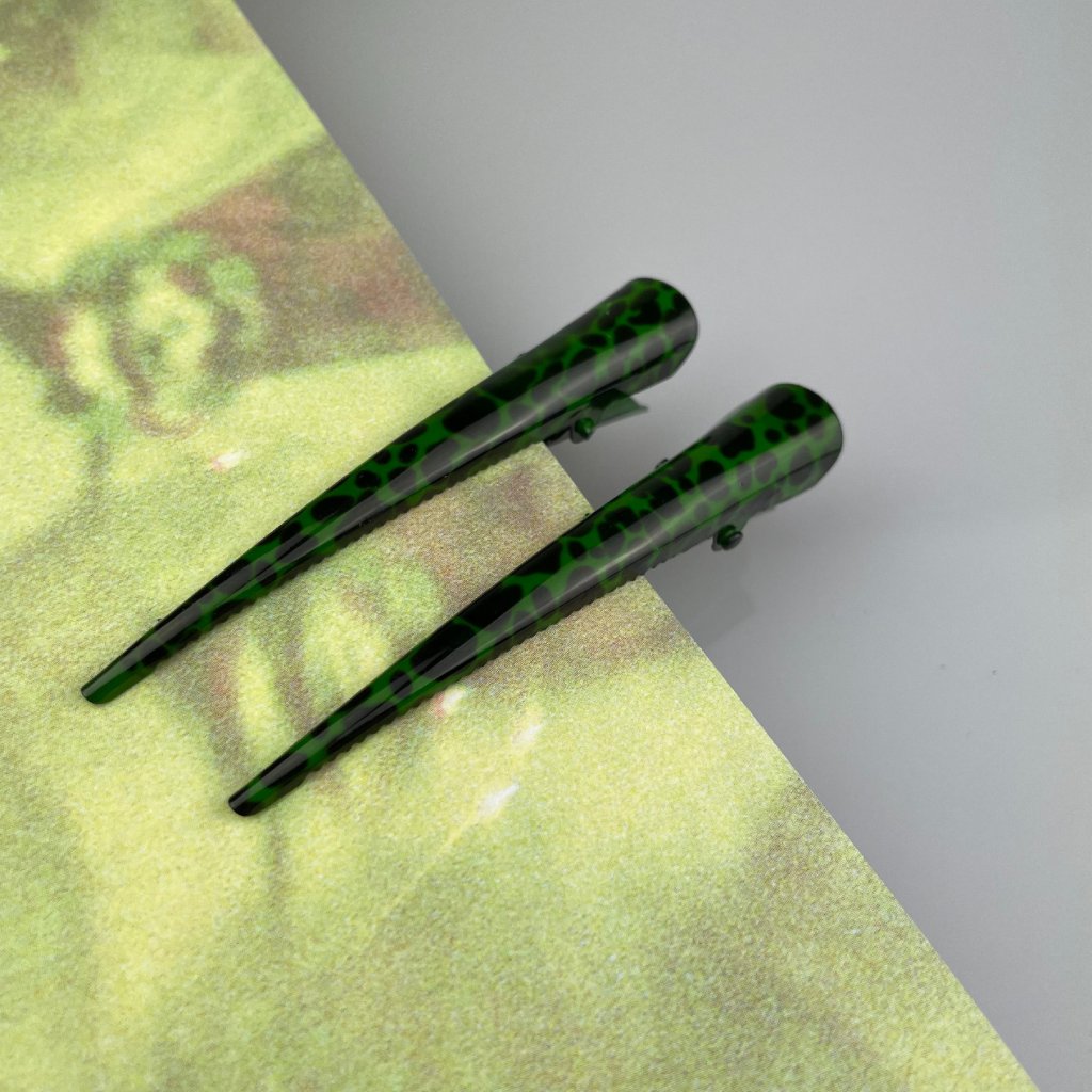 Spona do vlasov malá - leopardí vzor zelená 2ks