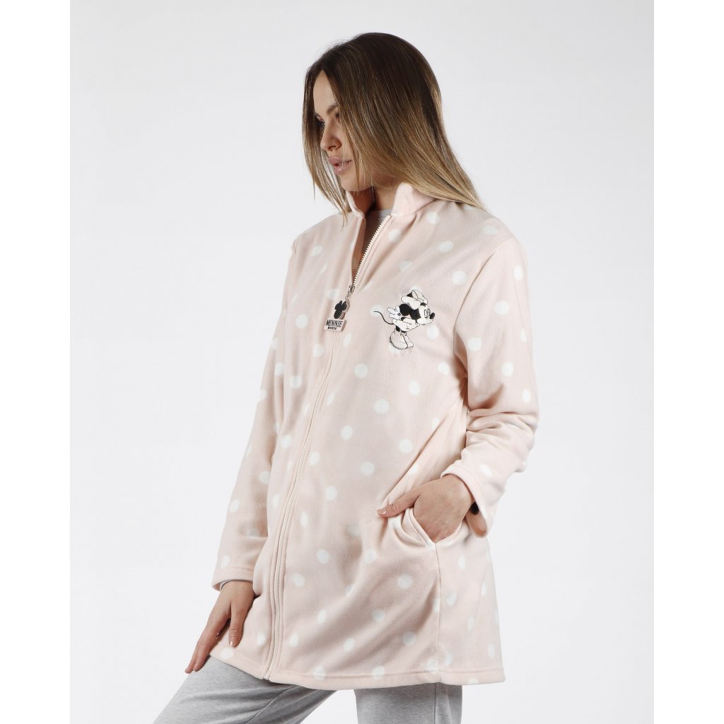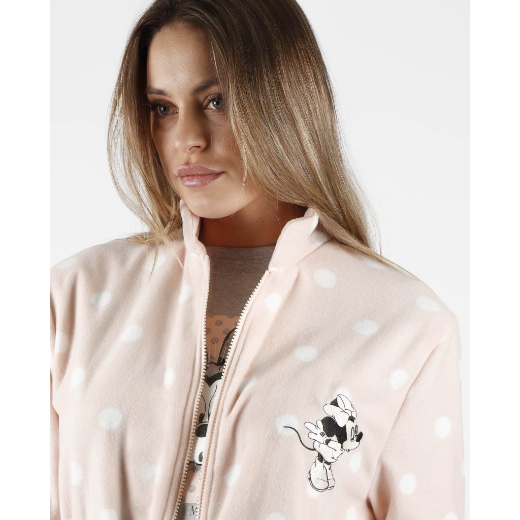 Minnie Mouse dámsky broskyňový župan na zips s bodkami